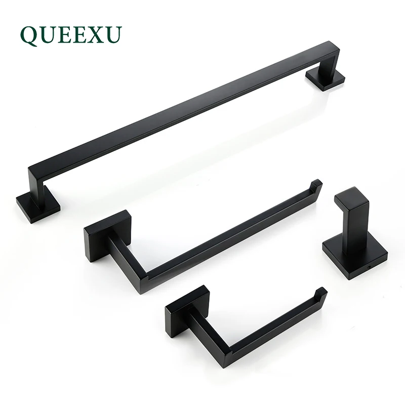 Набор аксессуаров для ванной комнаты QUEEXU, черный крючок для халата, вешалка для полотенец, вешалка, полка, держатель для салфеток, держатель для зубных щеток RA03