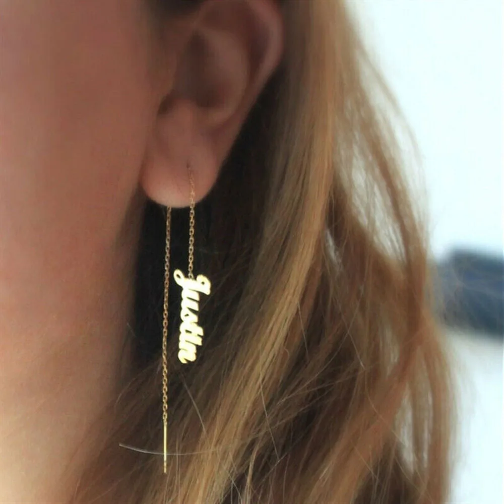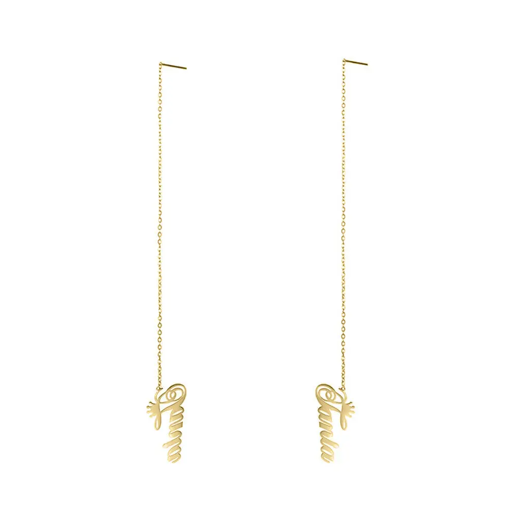 Индивидуальные именные Линейные серьги, длинные висячие серьги с кисточками и буквами, подарок для девочек, ювелирные изделия из нержавеющей стали