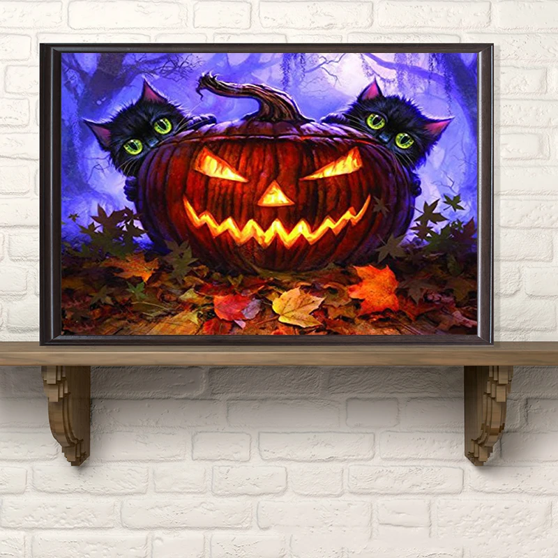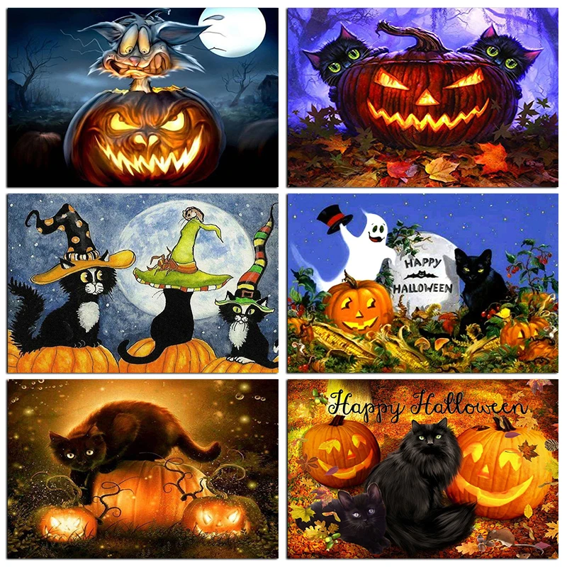 Алмазная 5D картина с полным заполнением, подарок на Хэллоуин, сделай сам, животное, кот, вышивка крестиком, квадратная мозаика, украшение для дома