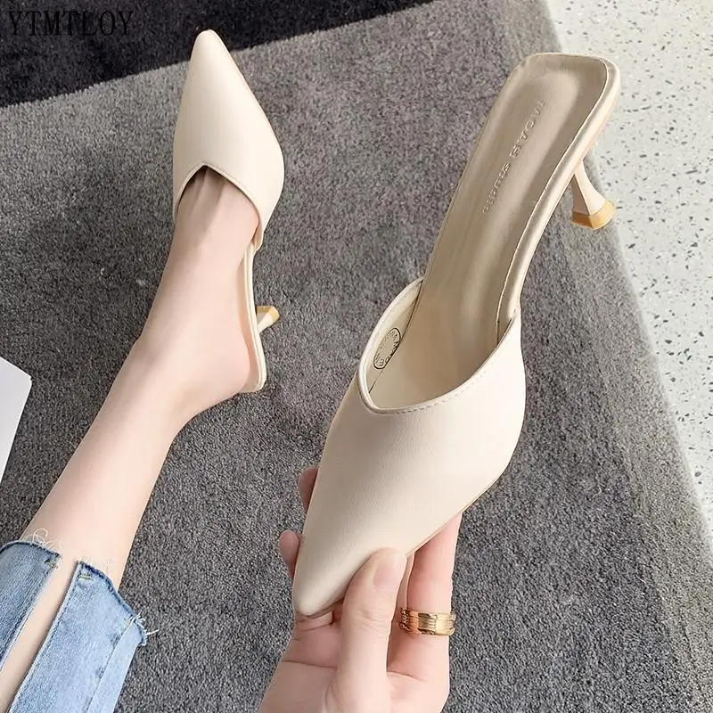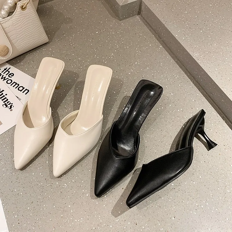 Туфли-лодочки Muller женские на тонком каблуке, повседневные сандалии с острым носком, летняя обувь для дома, 2022