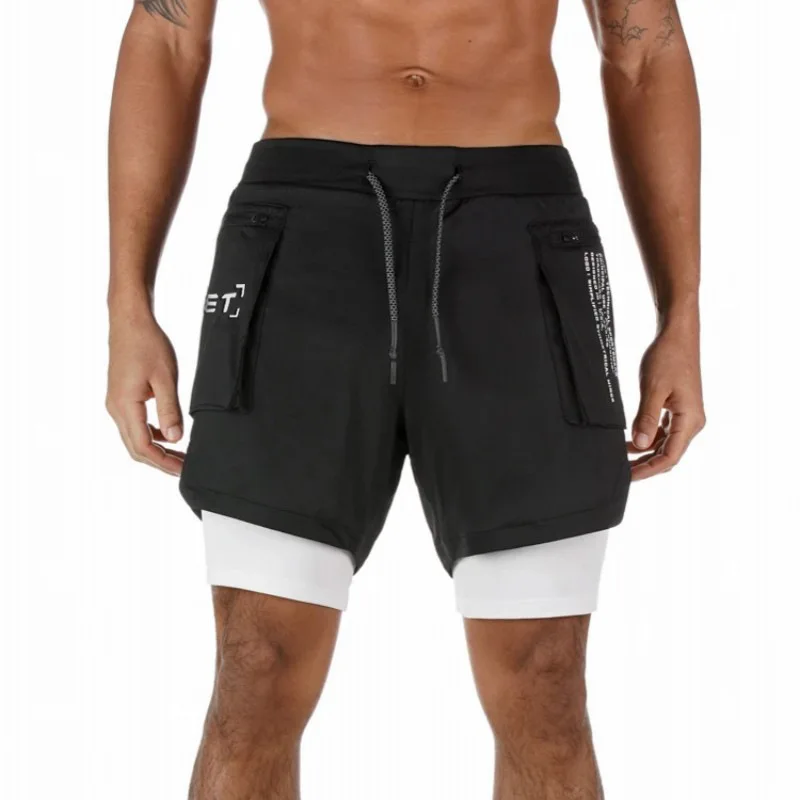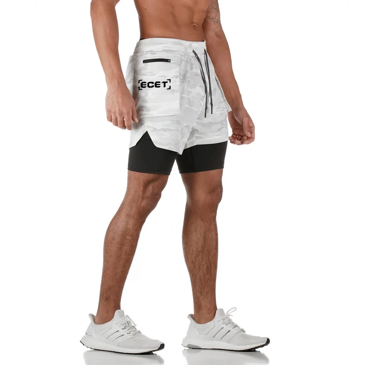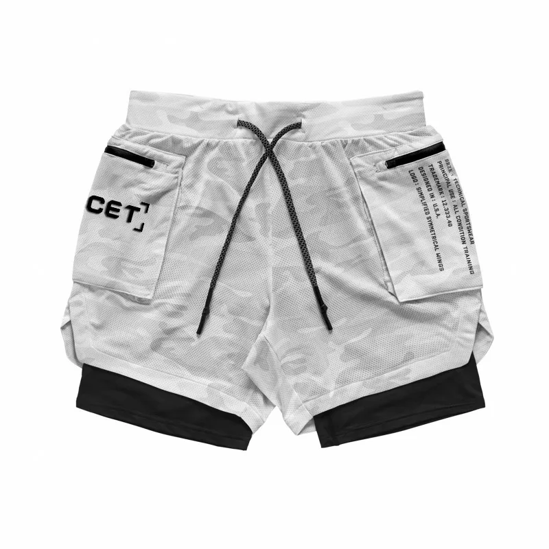 Шорты мужские спортивные двухслойные, быстросохнущие дышащие брендовые, камуфляжные, белые, повседневные, для спортзала и бега, лето 2021