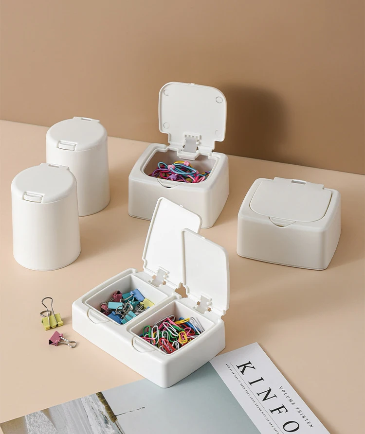 Мини-контейнер для хранения с крышкой, настольный пластиковый конте...