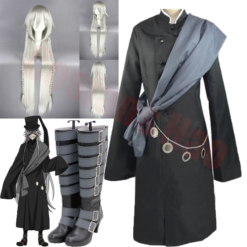 Аниме Темный дворецкий куросицудзи Гробовщик Косплей Костюм обувь Хэллоуин костюмы для вечерние на заказ полный набор шляпа цепочка и парик