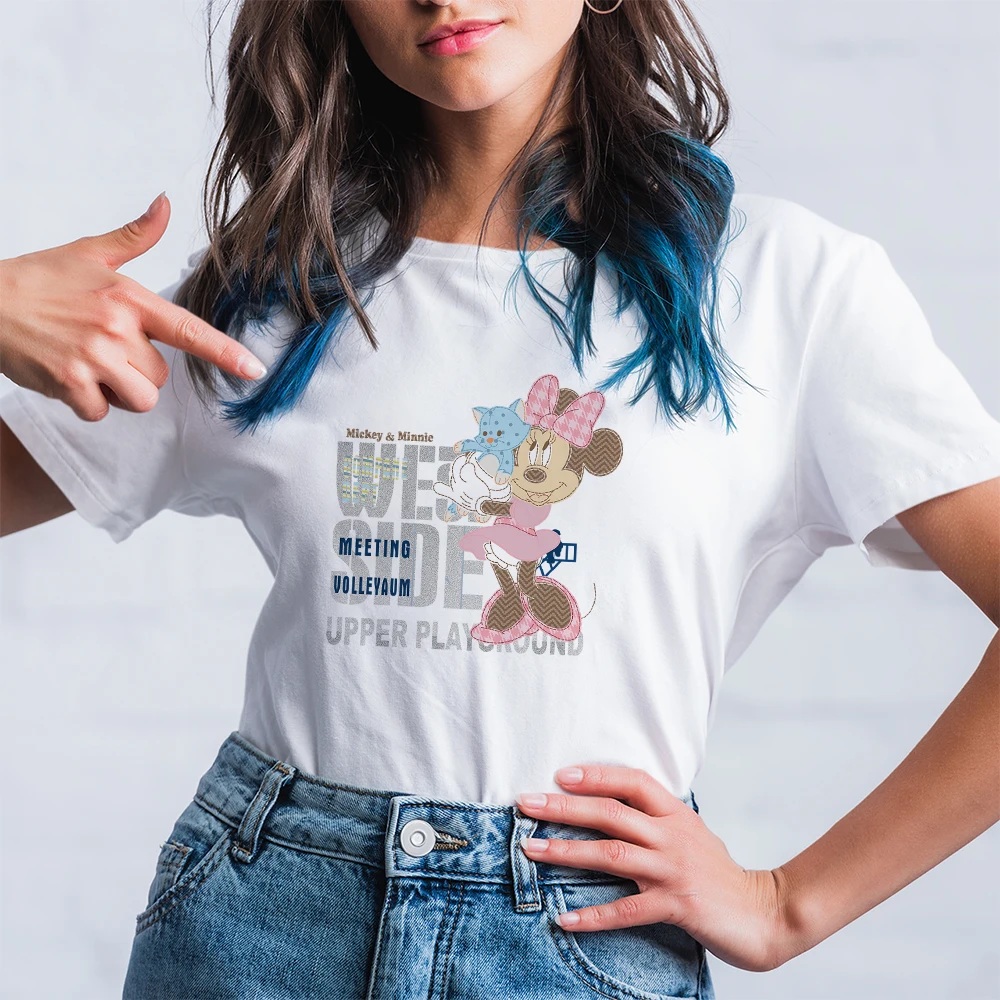 Женская футболка Disney, летние новые товары, свободная белая футболка с короткими рукавами, модные футболки, женские принты с принтом Минни Маус и букв