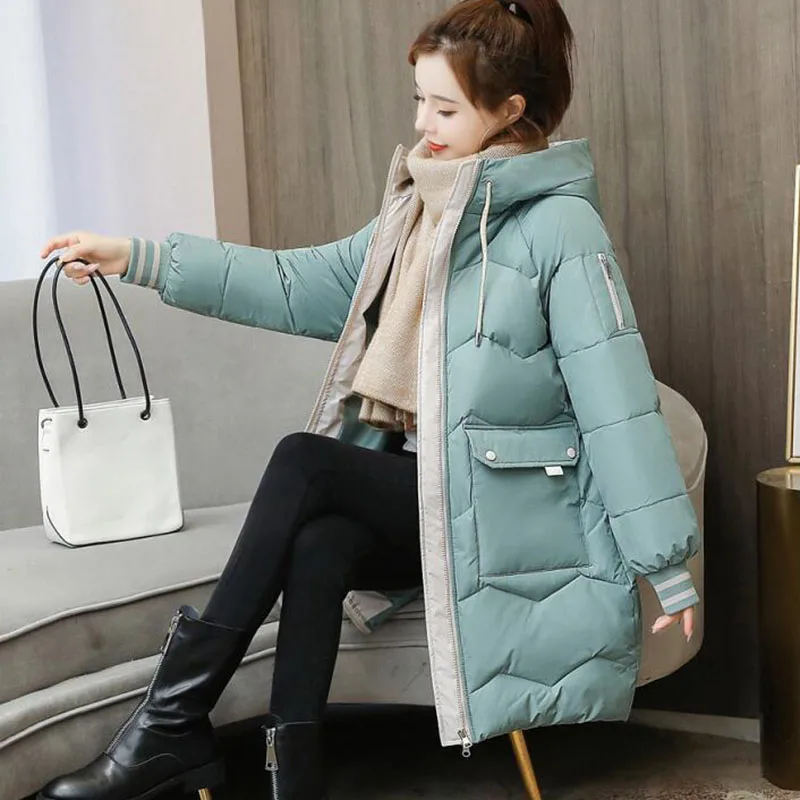 Длинное пуховое пальто из хлопка, женская зимняя парка, свободная теплая толстая зимняя куртка с капюшоном и длинным рукавом, пальто большого размера, верхняя одежда 2021