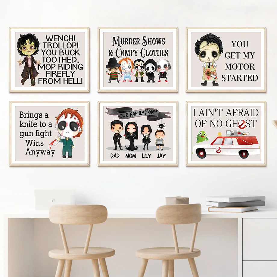Настенная картина на Хэллоуин, страшная семья, наряд, призрак, боится, Настенная картина, скандинавские плакаты и принты, настенные картины, декор для детской комнаты