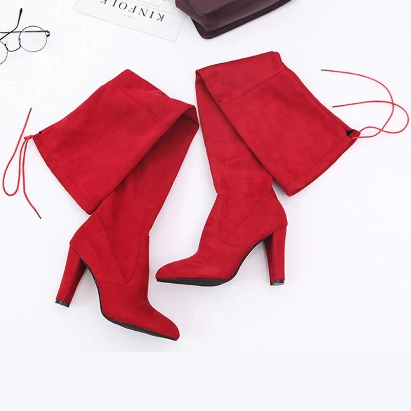 Женские сапоги выше колена, новинка 2022, модные женские сапоги на высоком каблуке, зимние сапоги из флока на молнии, женская обувь
