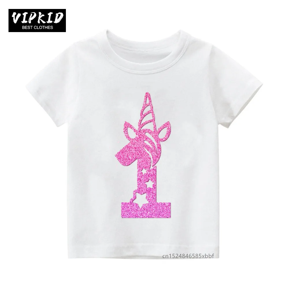 Футболка для мальчиков и девочек с рисунком единорога на день рожде...