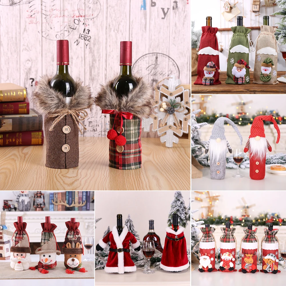 Рождественские Чехлы для винных бутылок, праздничные Чехлы для буты...