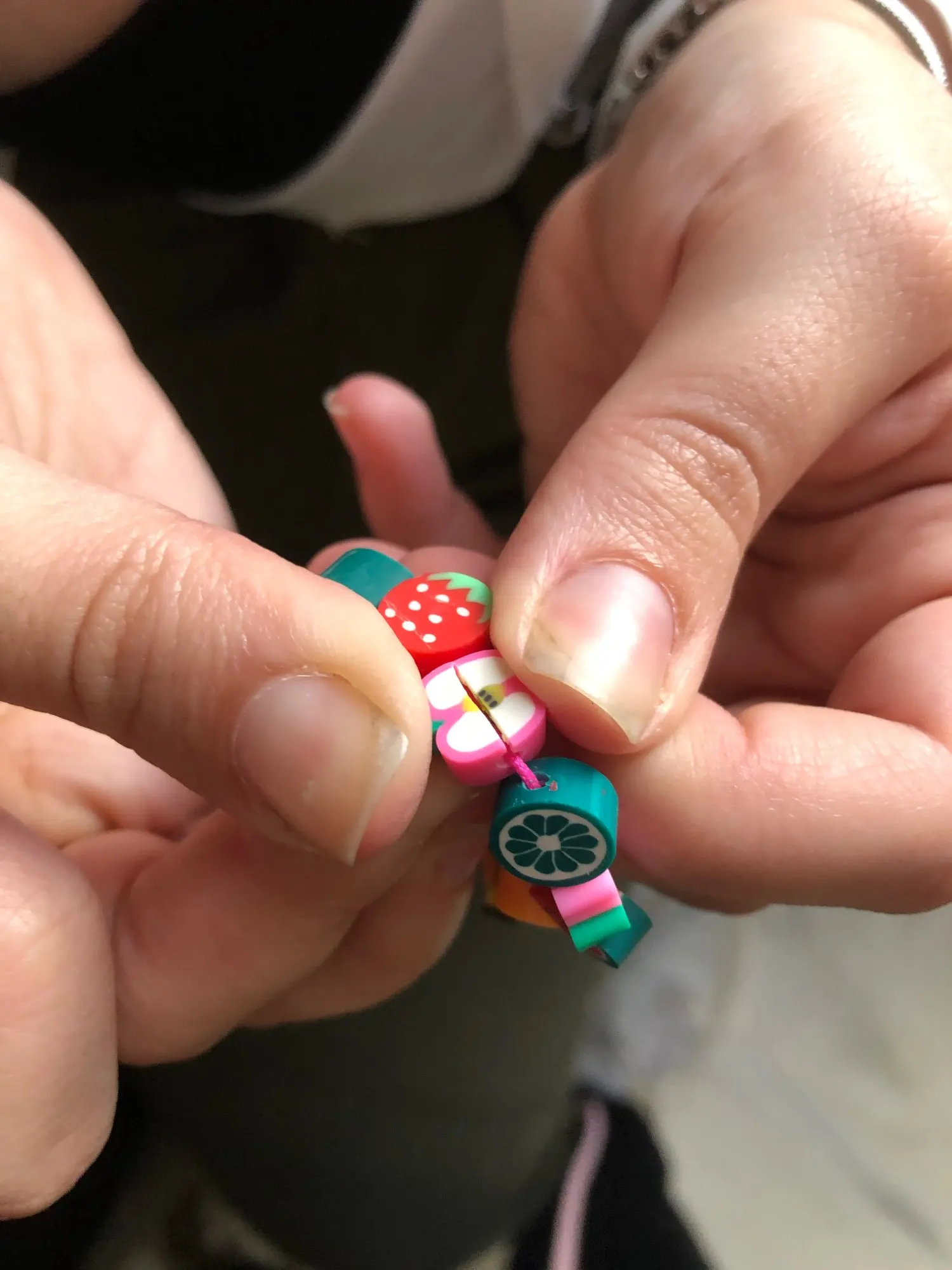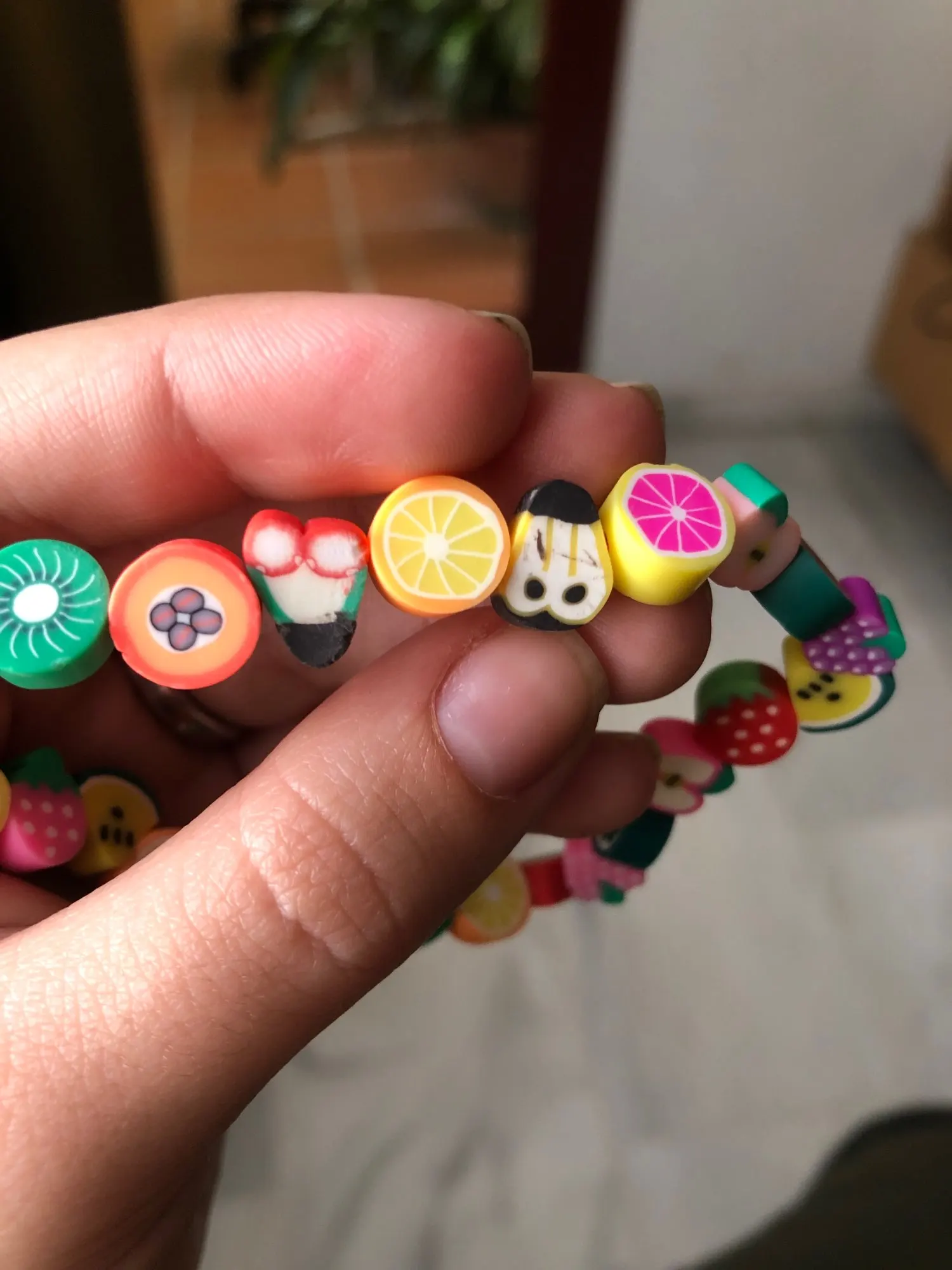 Ремешок-полное разочарование, цвета очень яркие, а другие обесцвечены по сравнению с продажной фотографией, многие фрукты плохо сделаны или окрашены, и некоторые пришли, которые собирались сломаться. Ничего не рекомендуется.
