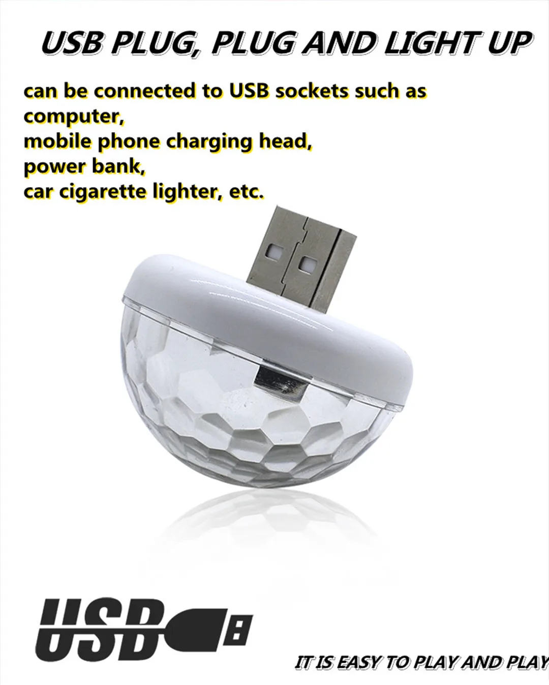 Подходит для украшения автомобиля, дискотеки, бальных танцев, КТВ, бара, сцены, клуба, вечерние, оборудования с интерфейсом USB и т. д.