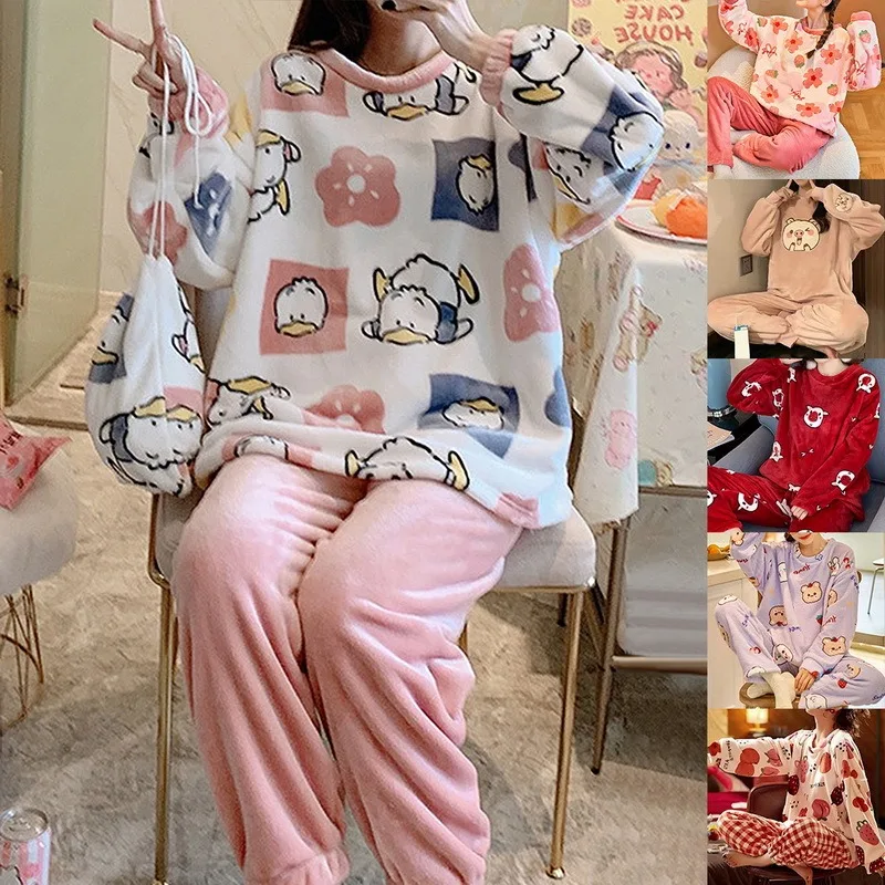 2021 зимние пижамы, женские толстые фланелевые теплые женские пижамные комплекты, длинные брюки с длинным рукавом, пижамы из двух предметов, домашняя одежда с мультяшным рисунком