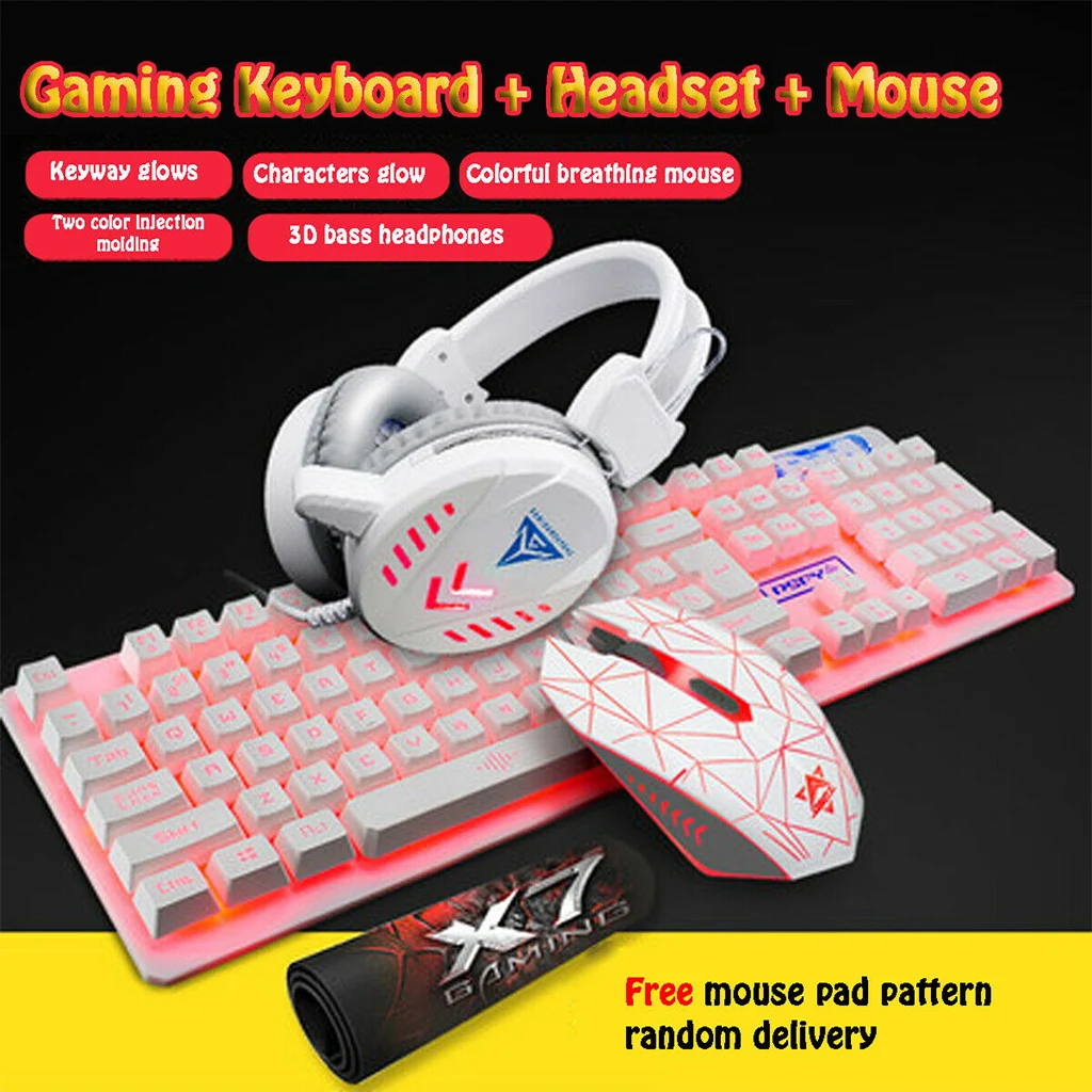 4 шт.компл. K59 Механическая проводная USB клавиатура с подсветкой, игровая мышь, коврик для мыши, наушники для дома, компьютера, настольного компьютера, подсветка