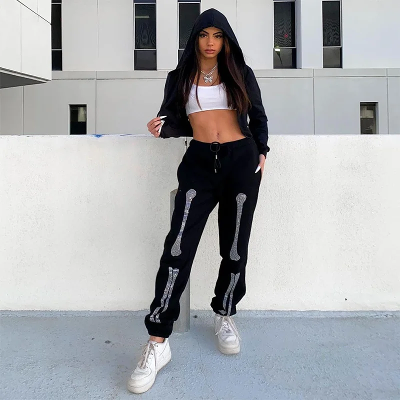 Y2K Стразы худи скелет Женская Осенняя уличная одежда на молнии гот...