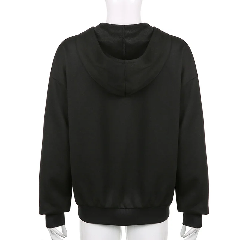 Женская толстовка на молнии, черная Повседневная Свободная кофта в ...