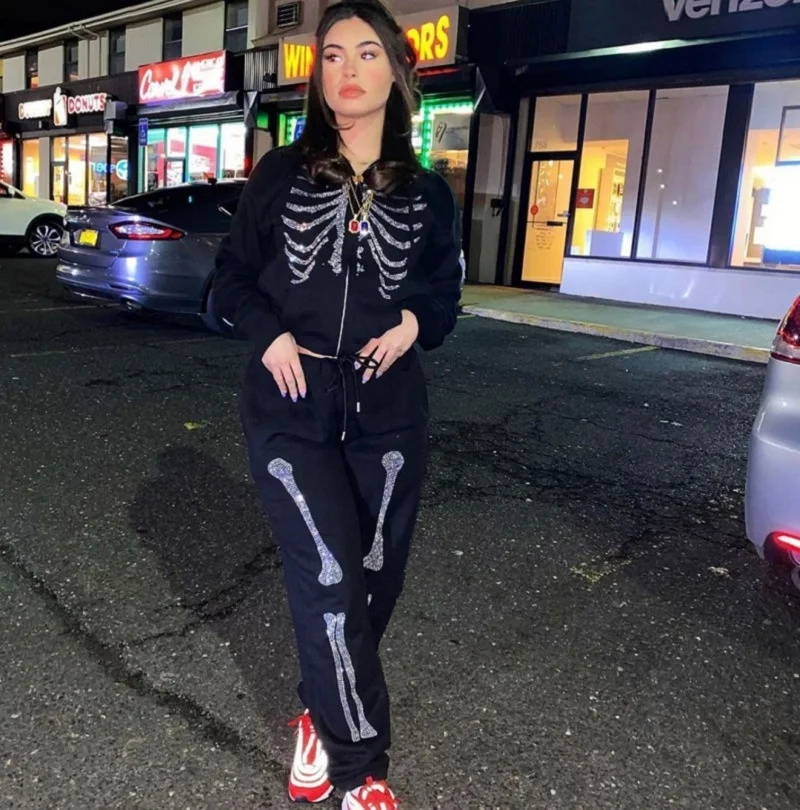 Y2K Стразы толстовки со скелетом на молнии женские толстовки оверса...