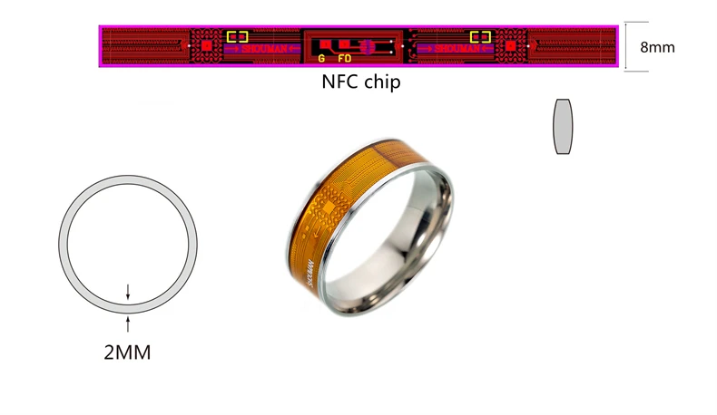 Вопиющее кольцо, но нет NFC. Я заказал два, и оба не имеют NFC активности при тестировании. Тестер работает на метках nfc. Постараемся связаться с продавцом без ответа.