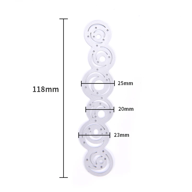 Особенности:-100% новый и высокое качество.Спецификация:Тип: металлическая высечкаМатериал: углеродистая стальРазмер: 118 ммЦвет: серебристыйПосылка: 1 * Металлическая высечка