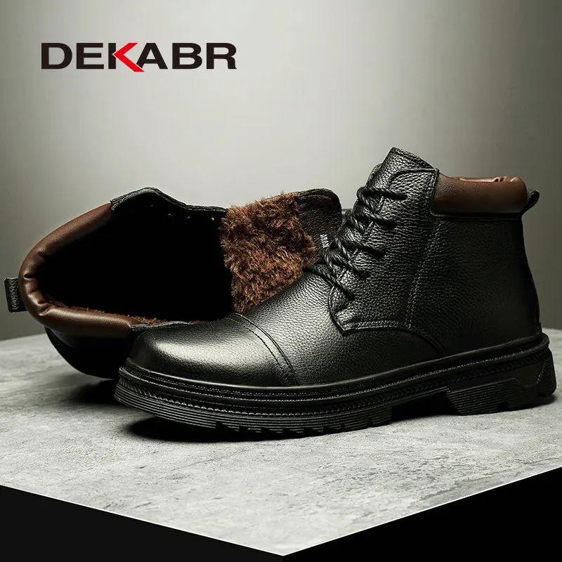 DEKABRмужские роскошные деловые ботинки; Зимняя обувь из натуральной кожи с круглым носком; Винтажные Зимние ботильоны; Повседневные ботинки для езды на мотоцикле