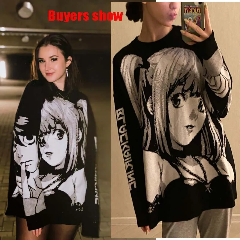 Вязаный свитер с аниме для девочек, мужской уличный свитер в стиле хип-хоп, винтажный пуловер, женские топы в японском стиле Харадзюку, весна 2021