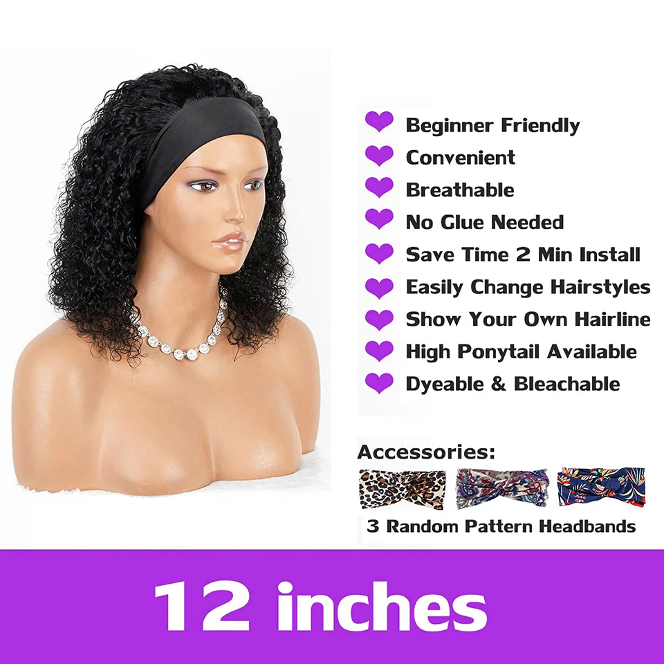 Бразильские волнистые парик с головной повязкой человеческие волосы...