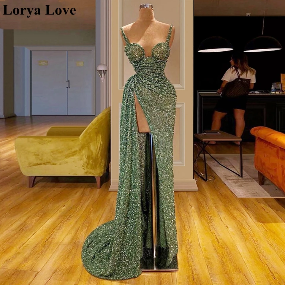 Женское вечернее платье-русалка, зеленое платье с блестками на тонких бретельках, элегантное платье для выпускного вечера, 2022