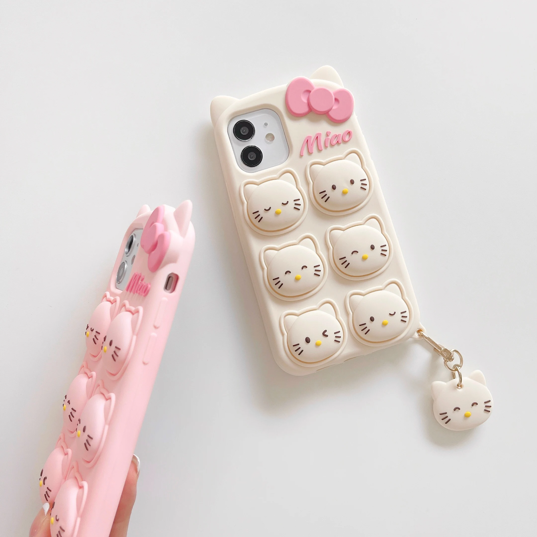Милый 3D чехол с бантом и котом для снятия стресса, мягкий силиконо...