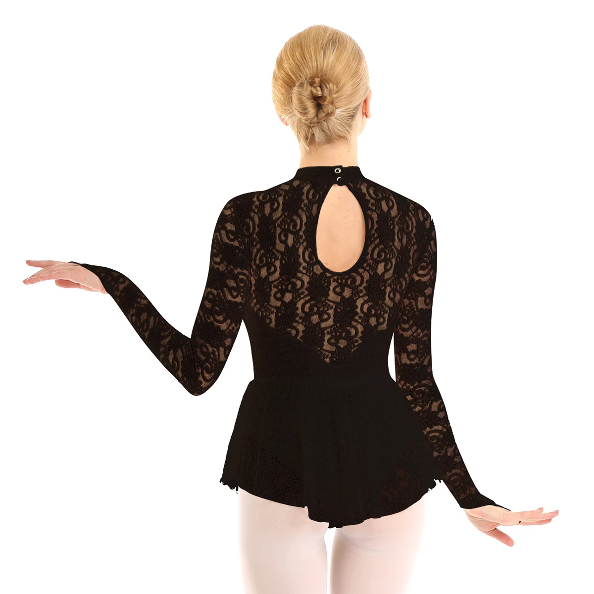 TiaoBug Женский взрослый с ложным воротником с длинным рукавом кружевные фигурки для катания на роликах танцевальные костюмы для балета