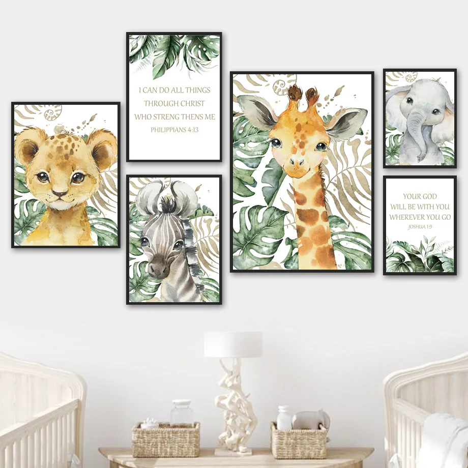 Настенная картина с Львом, зеброй, жирафом, слоном, листьями для де...