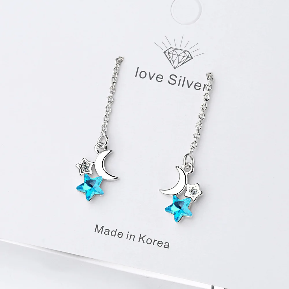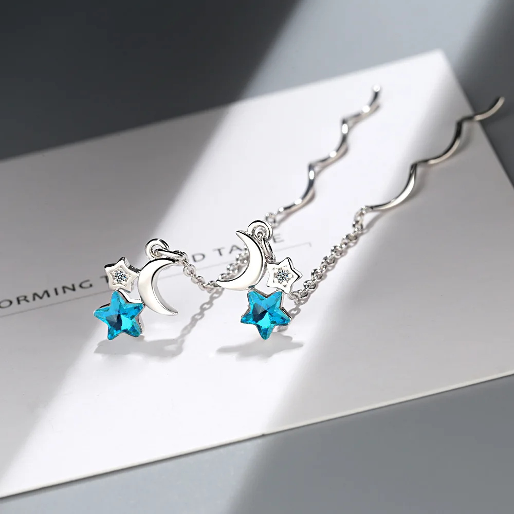 Женские серьги из серебра 925 пробы с лазурным звездным небом