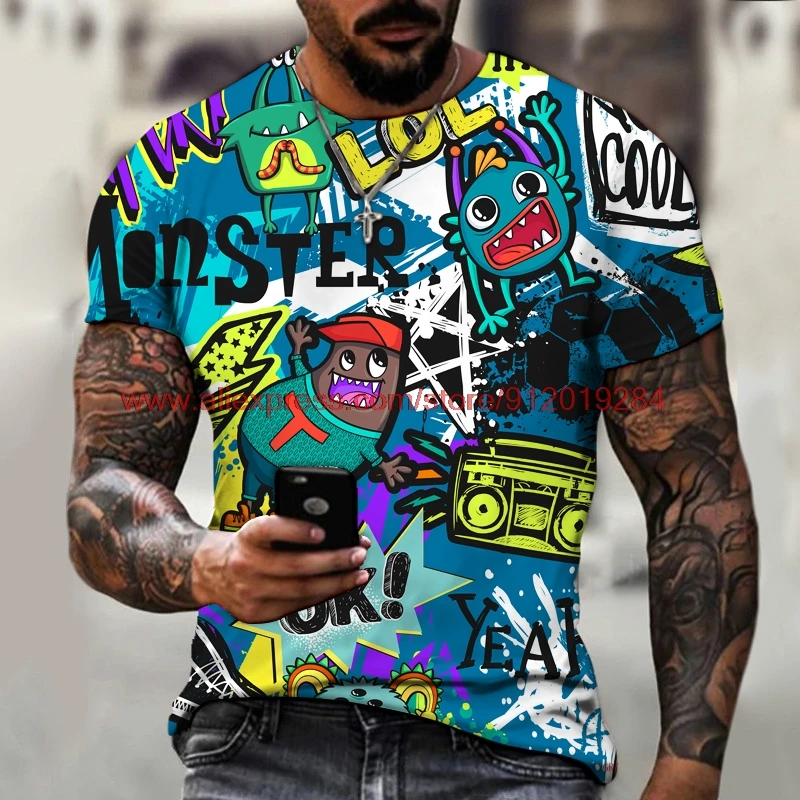 Футболка Мужскаяженская с забавным 3D-принтом, повседневная тенниска с круглым вырезом, модная уличная одежда в стиле Харадзюку, лето 2021