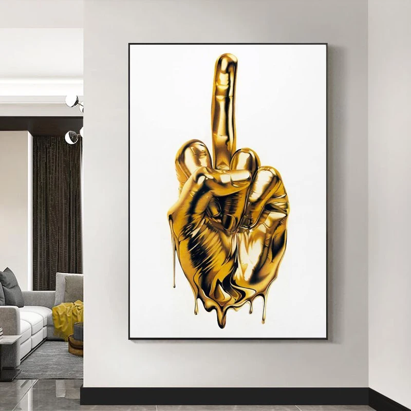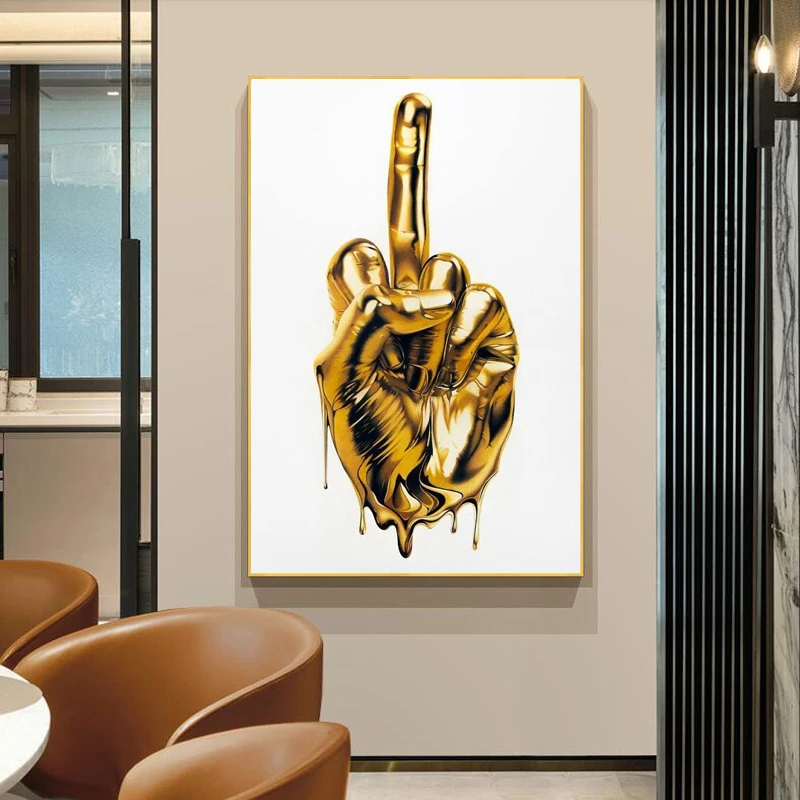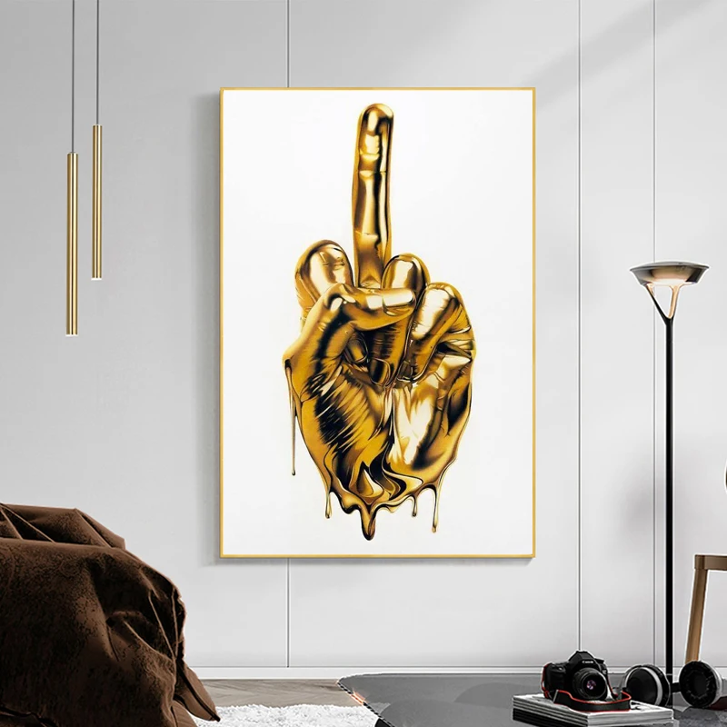 Картина на холсте Золотой средний палец, скандинавские настенные постеры и принты, Настенная картина для декора гостиной