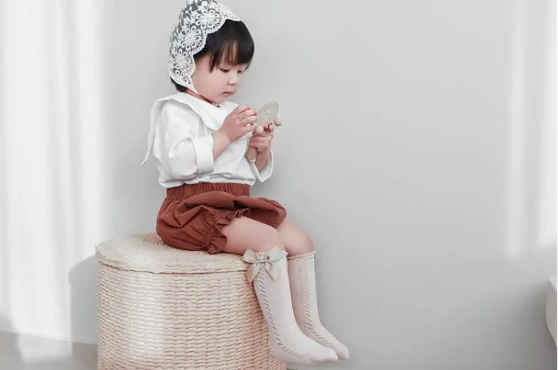 Весенне-осенние модные носки для девочек с бантиками, детские длинные мягкие чулки детские хлопковые Высокие гольфы до колена От 0 до 6 лет