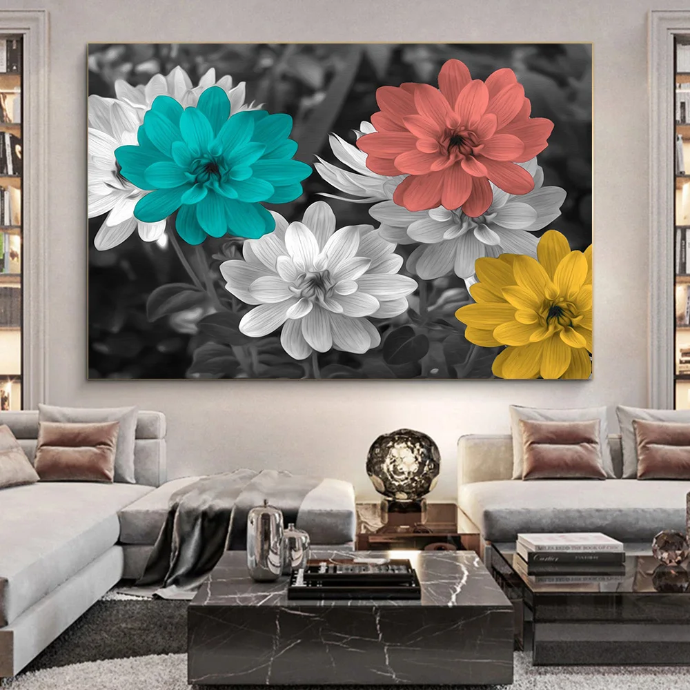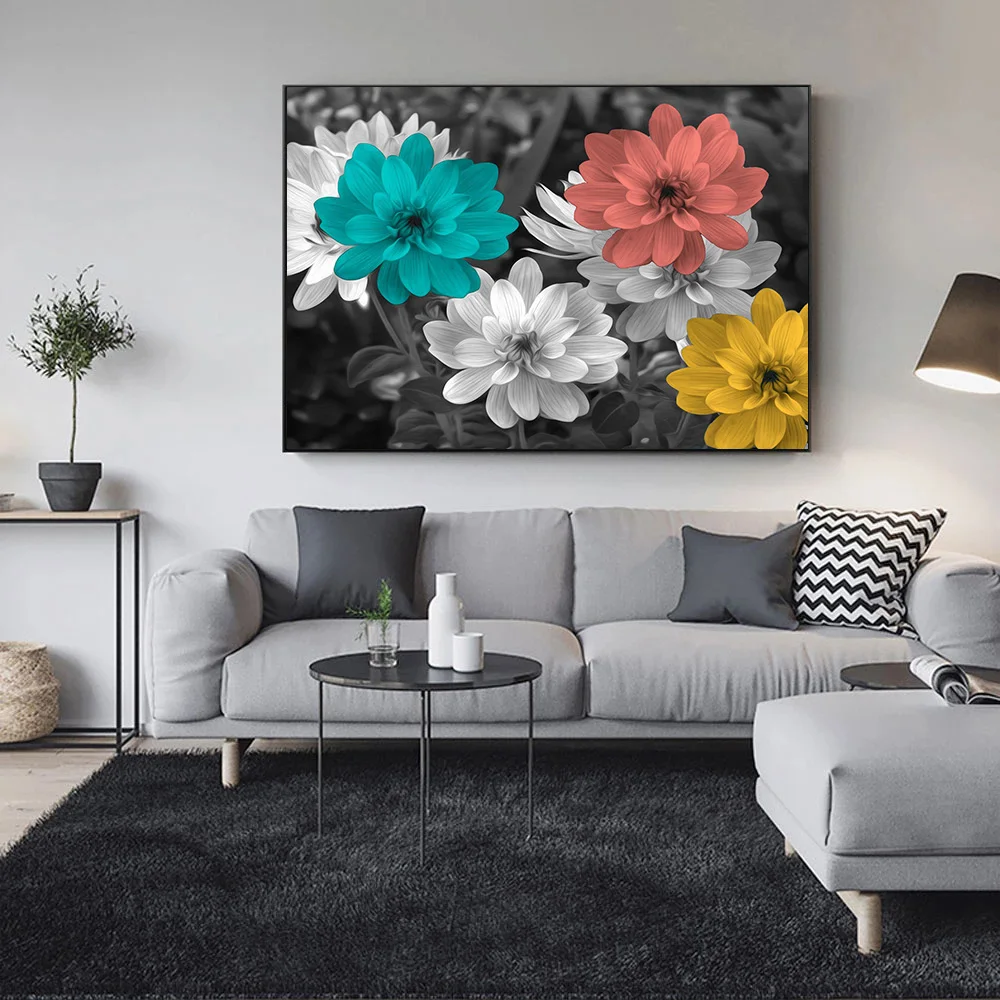 HD принты домашний декор абстрактные Серые Синие красные желтые цветы Настенная Картина на холсте постер картины для гостиной без рамки