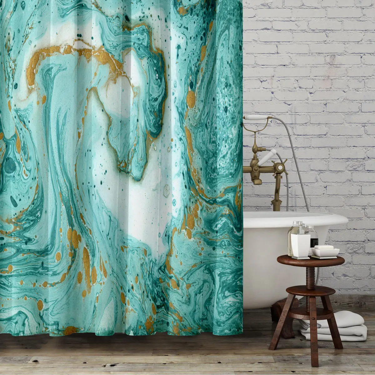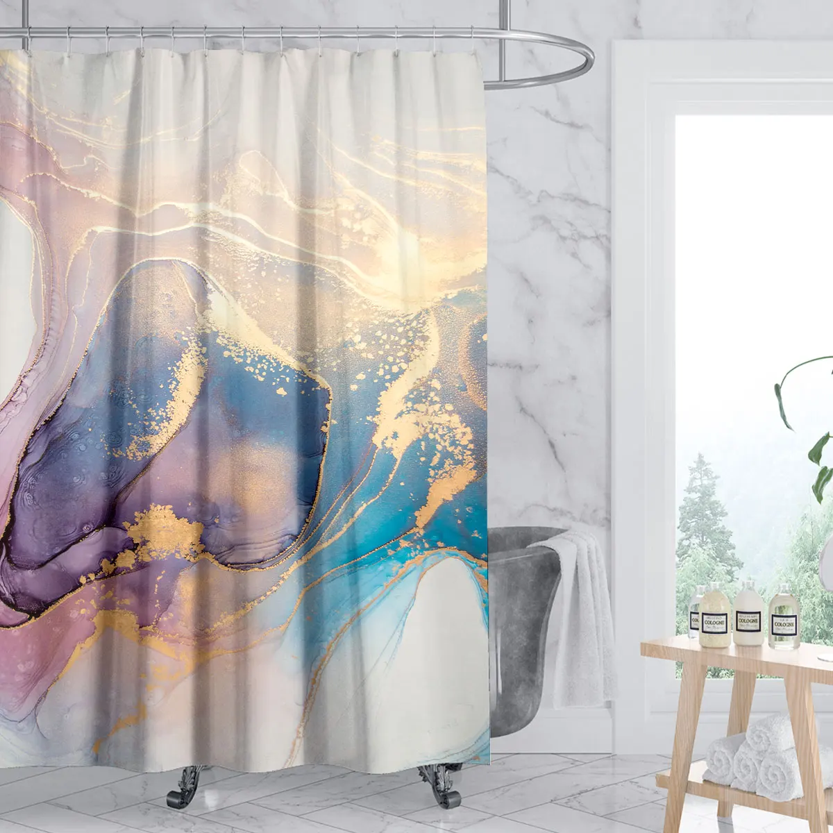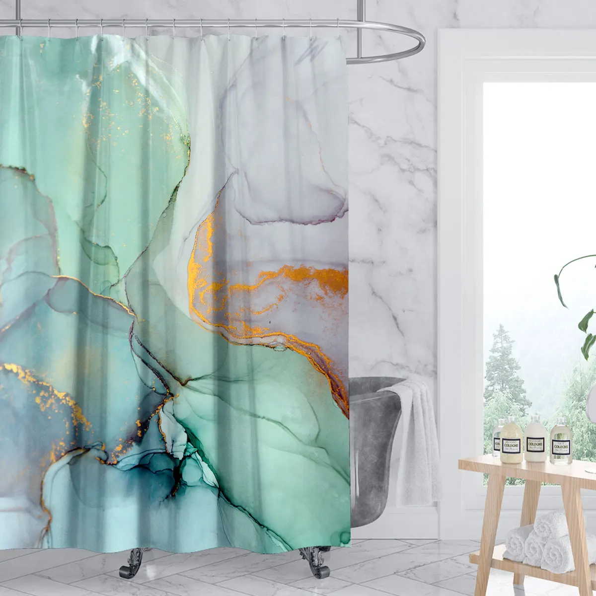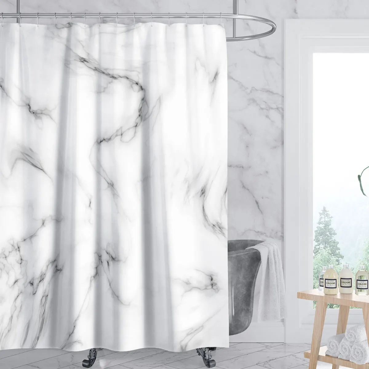 Занавеска для душа из высококачественной ткани с мраморным принтом, Водонепроницаемый моющийся штор из полиэстера для ванной комнаты, Декор