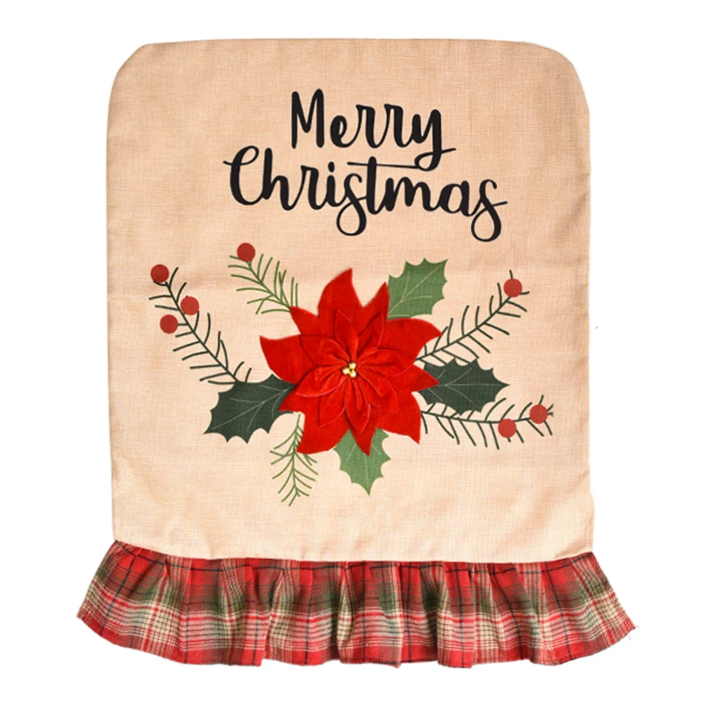 Рождественский чехол на стул из льняной ткани, эластичный чехол на ...