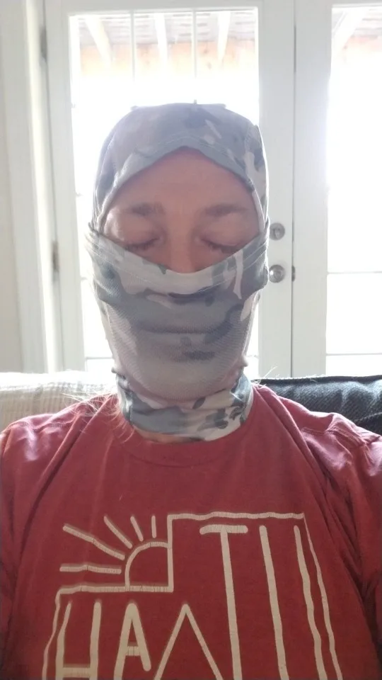 На картинке он выглядит в основном белым, в реальной жизни он сероватый. Он настолько маленький, что я почти не могу получить его на своей голове (у меня есть маленькая голова), а щель для глаз вытягивается очень широко из-за плохой посадки, подверженной большинству моего лба.