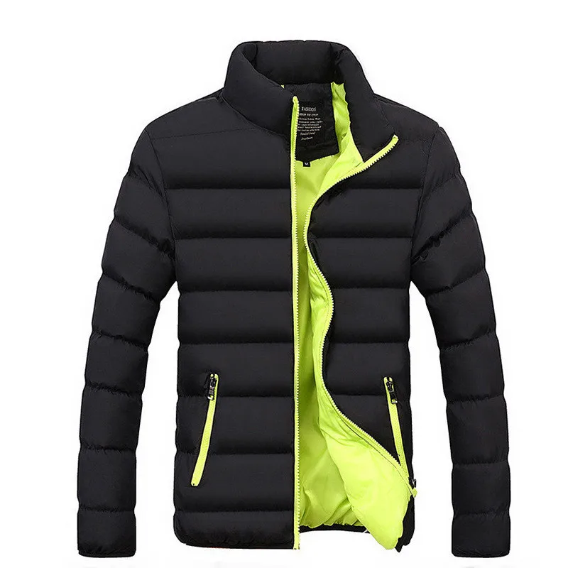 Мужская куртка с длинным рукавом, Повседневная модная ветровка на молнии, ветрозащитная одежда, плотная мужская верхняя одежда с воротником-стойкой, однотонное зимнее пальто