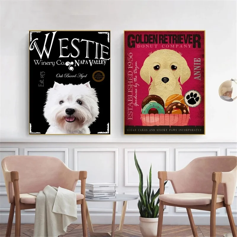 Настенная картина симпатичная собака, абстрактные постеры и принты ...