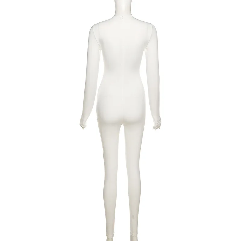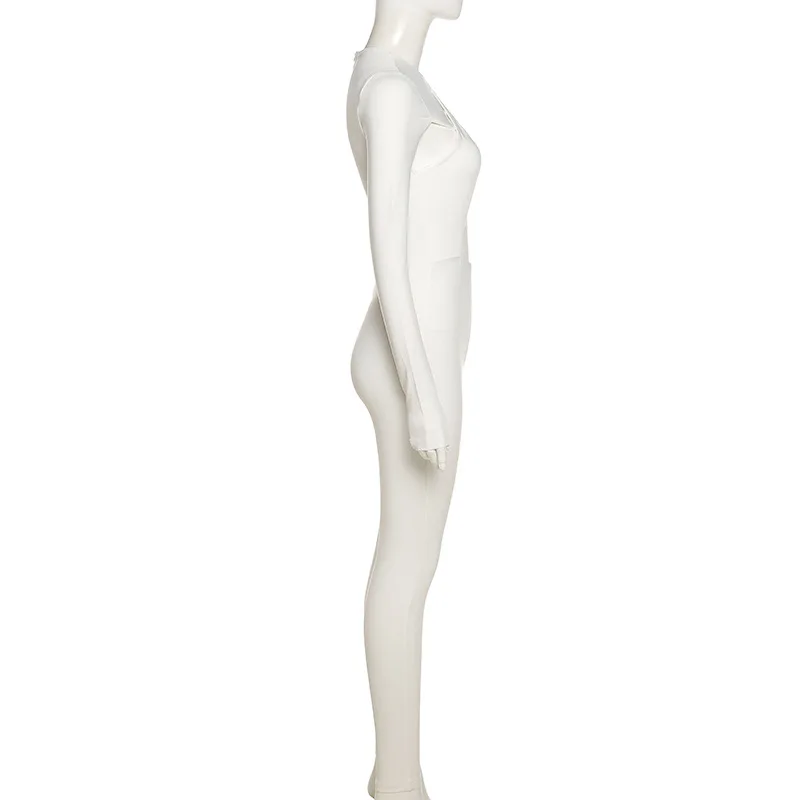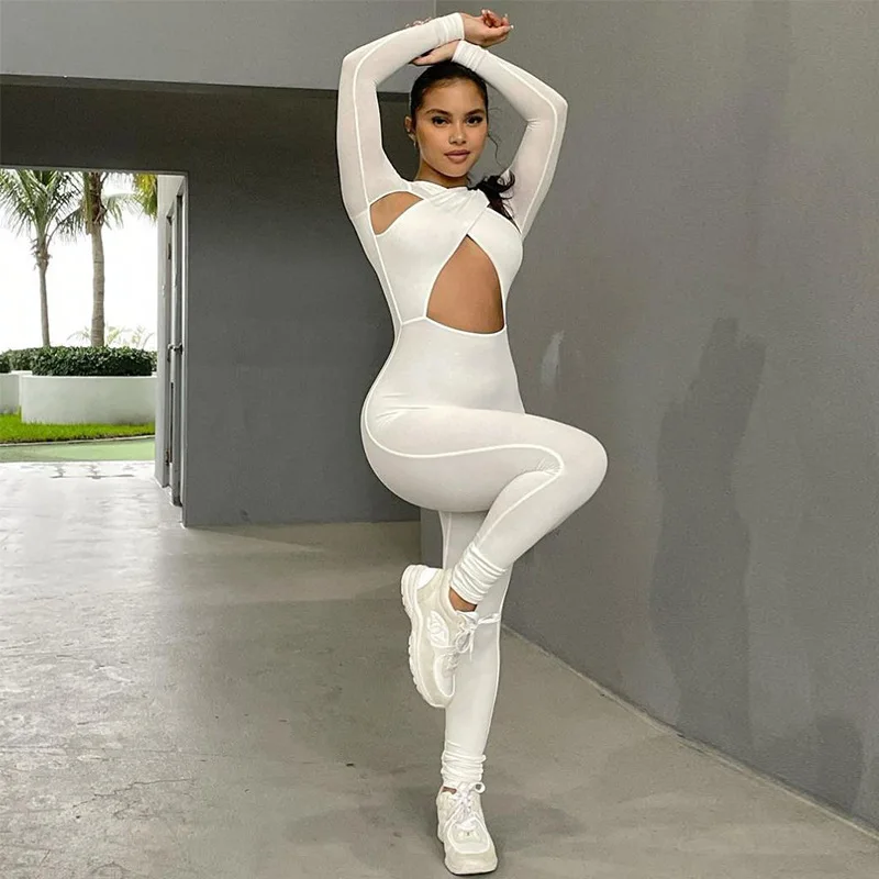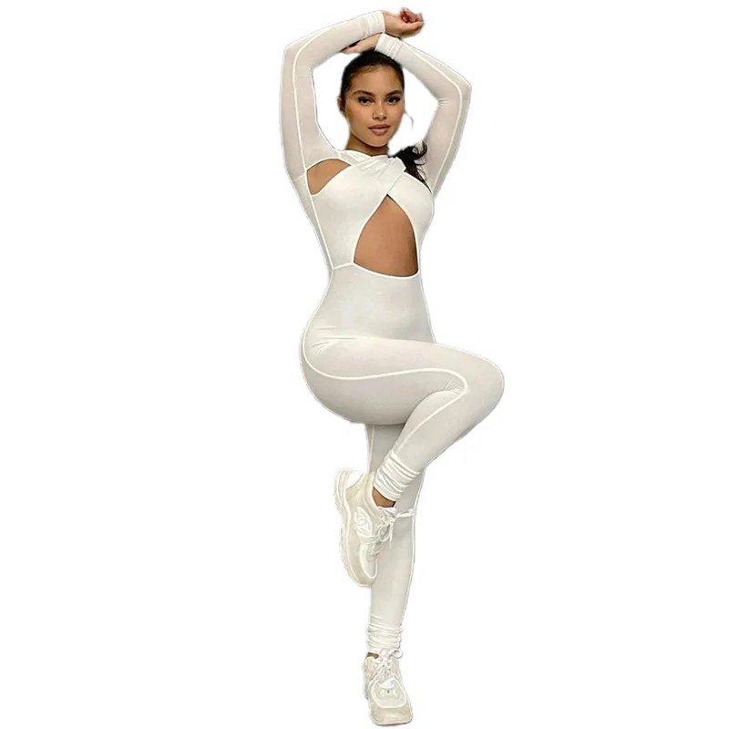 Женская одежда в европейском и американском стиле, Новинка осени 2021, сексуальный комбинезон с вырезом, высокой талией и длинным рукавом, спортивный комбинезон для фитнеса и отдыха
