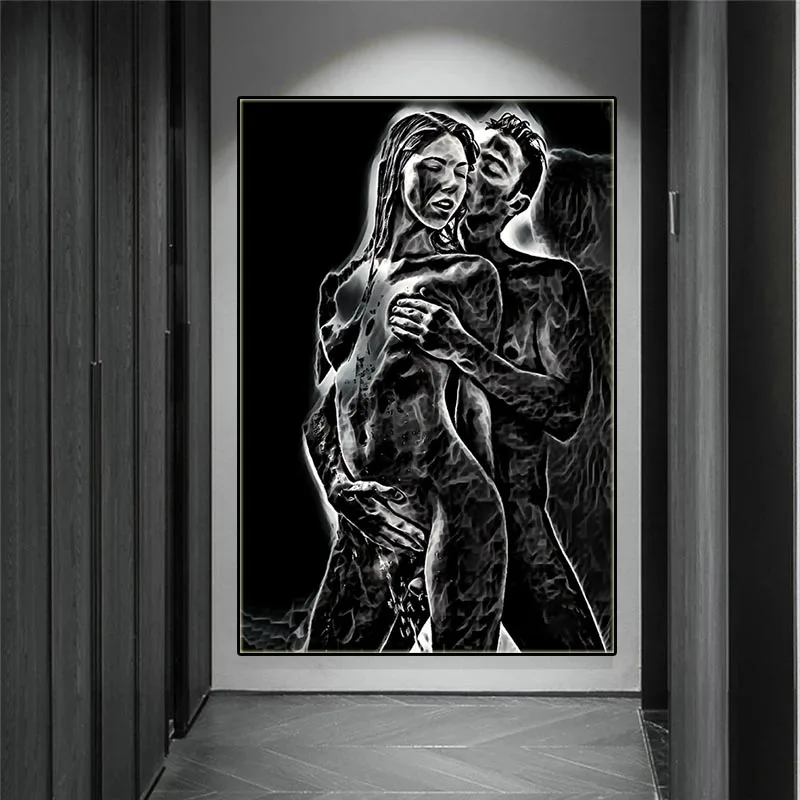 Картина маслом в стиле граффити, сексуальная, Обнаженная, абстрактная, Обнаженная женщина и мужчина, плакат на холсте с изображением страсти, декор для бара для стены в спальне отеле