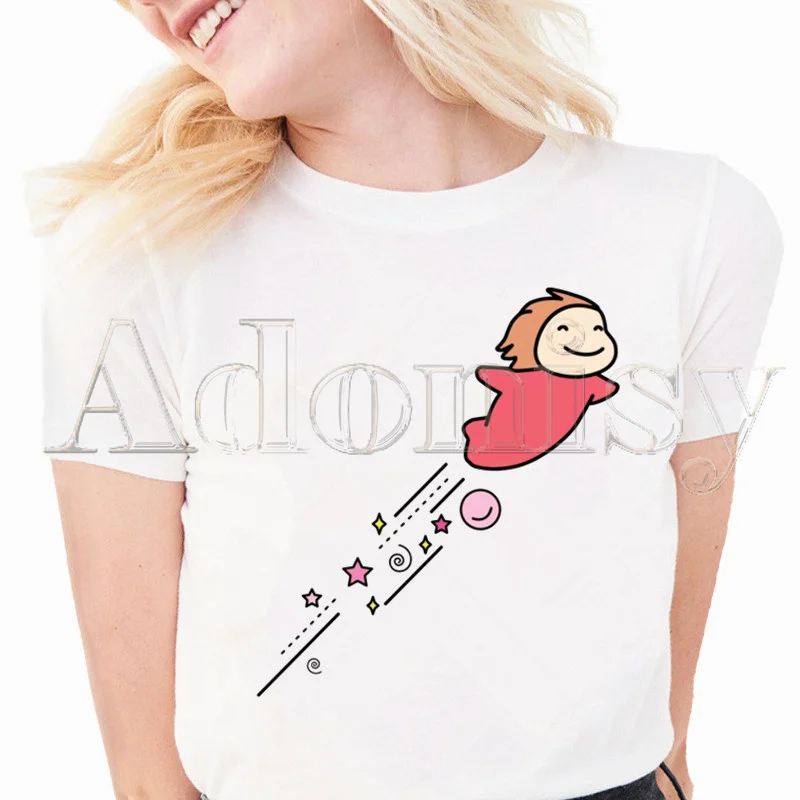 Футболка Ponyo на скале, Миядзаки, Хаяо, студийной дамской гибли, ж...