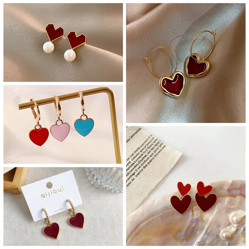 Ювелирные изделия из сплава в форме сердца с красной эмалью, милые ...