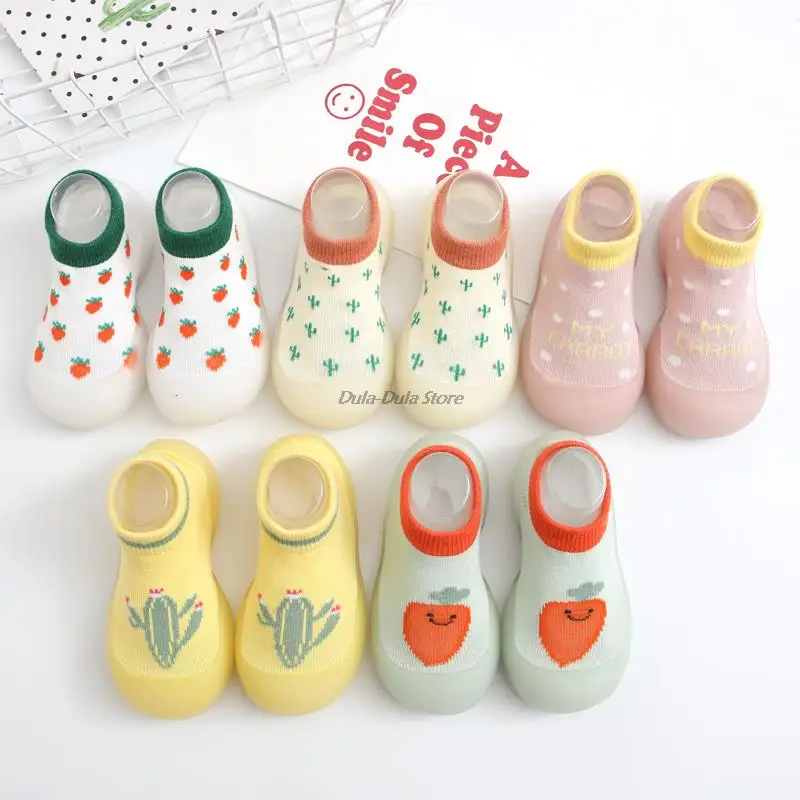 Туфли для девочек, вязаные мягкие туфли для мальчиков, удобные детские туфли, мультяшная клубника, детские Нескользящие Туфли-носки унисекс