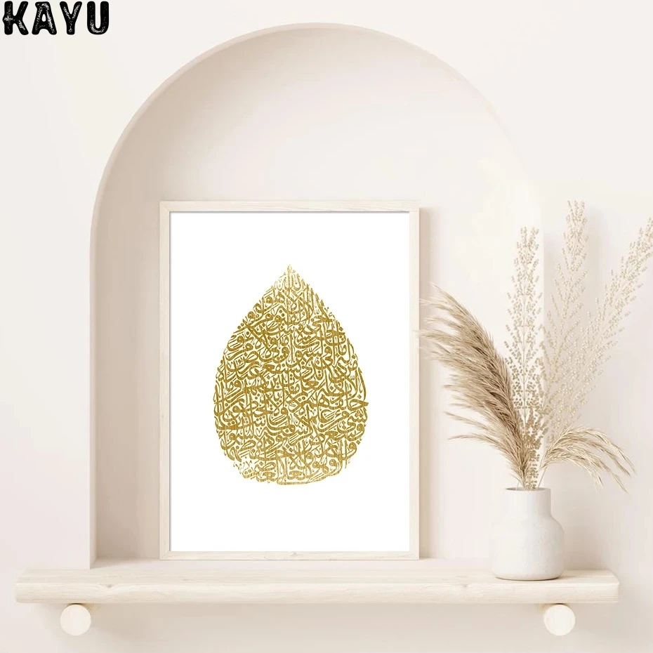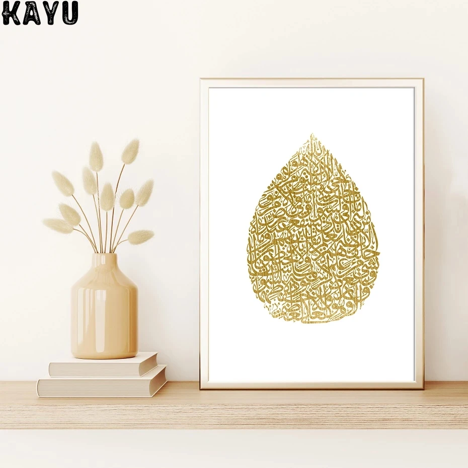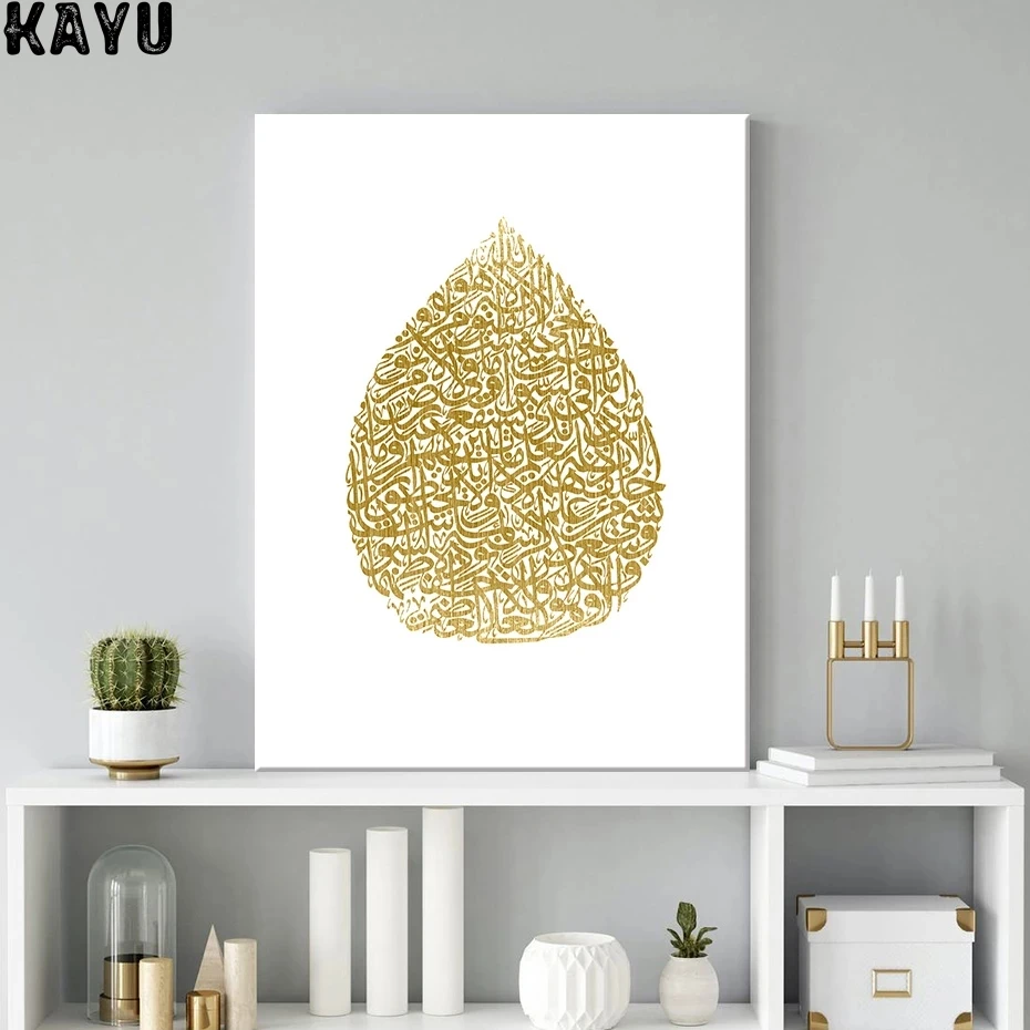 Золотая Ayatul Kursi мусульманская арабская каллиграфия роспись стены Искусство на холсте картины Домашний декор мусульманские плакаты и принты для спальни