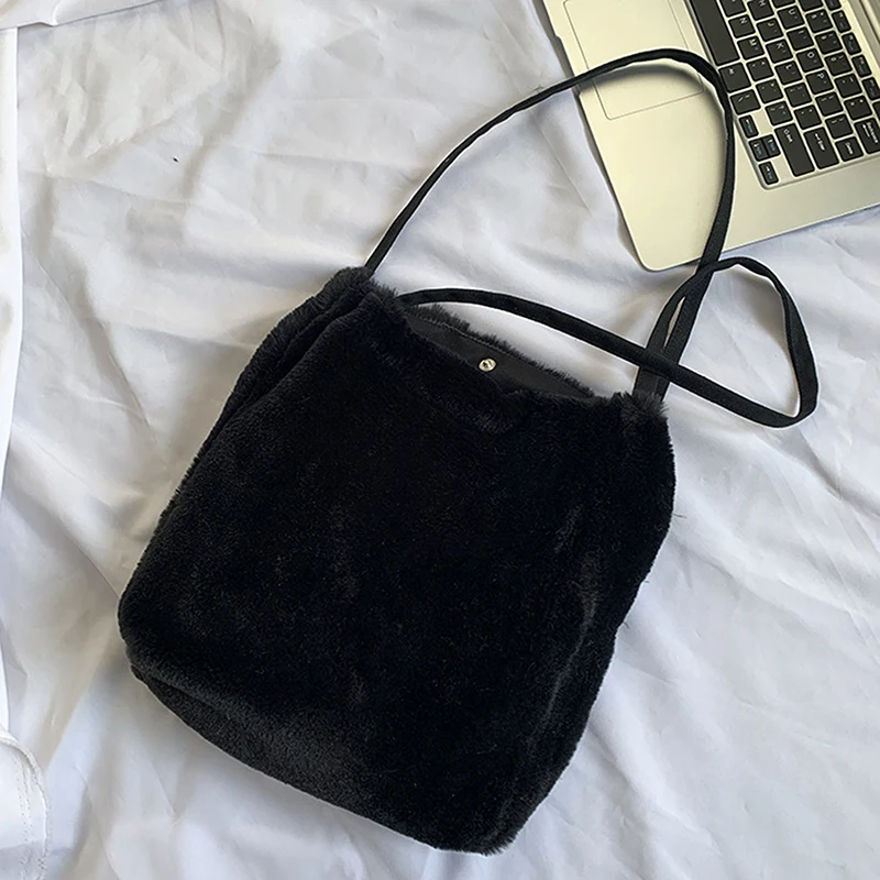 Зимние плюшевые сумки на плечо, женские, вместительные, однотонные,...