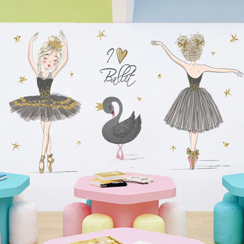 Милые Стикеры с балеринами для девочек, декор для комнаты, лебедь, настенные Стикеры, наклейки, милые настенные Стикеры для танцев, школы, настенные Стикеры, домашняя наклейка P130