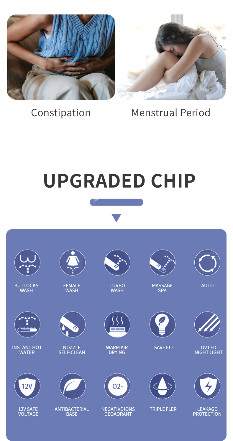 Умное сиденье для унитаза EcoFresh V-образной формы, электрическое ...