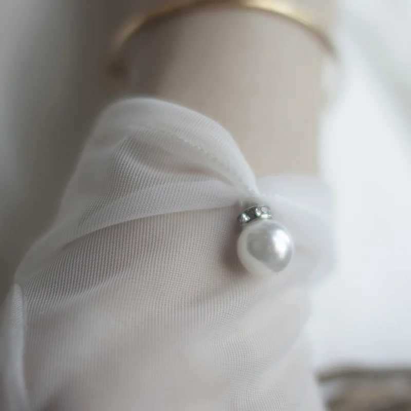 Высококачественные шифоновые свадебные перчатки, белые короткие перчатки с бантом и жемчугом, женские свадебные перчатки, аксессуары для свадебной вечеринки