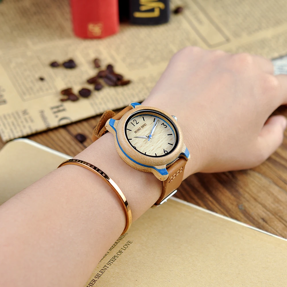 Часы женские деревянные кварцевые с кожаным ремешком и силиконовым ремешком